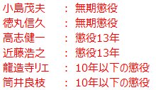 - 小島茂夫(主犯):無期懲役